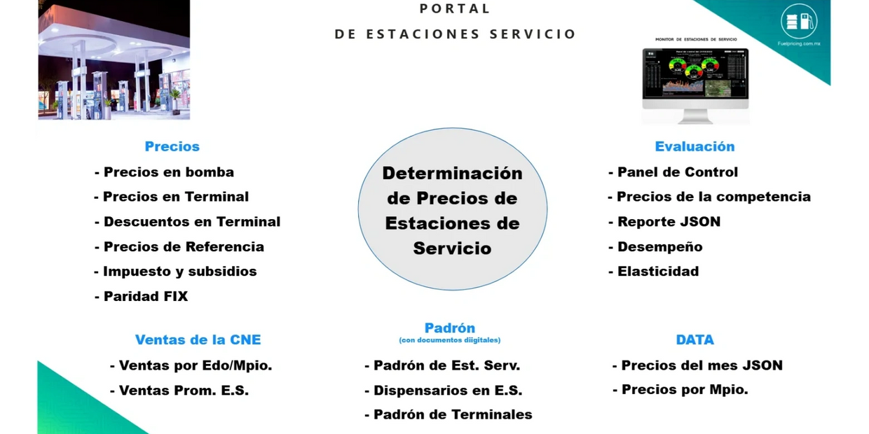 Las fuentes de datos del sitio fuelpricing.com.mx, son públicas y proceden según corresponda de los portales de los Órganos reguladores y del Sector.
