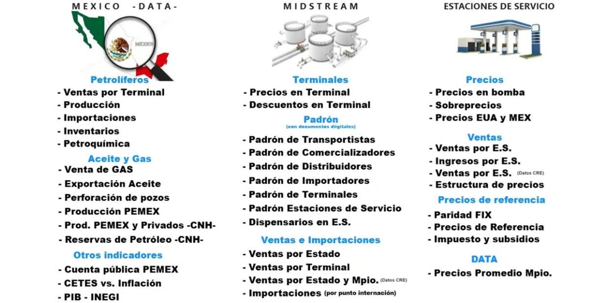 Las fuentes de datos del sitio fuelpricing.com.mx, son públicas y proceden según corresponda de los portales de los Órganos reguladores y del Sector.